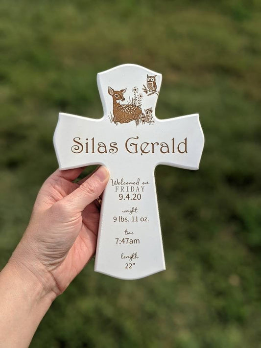 Personalized Nursery Newborn Birth Stats Cross