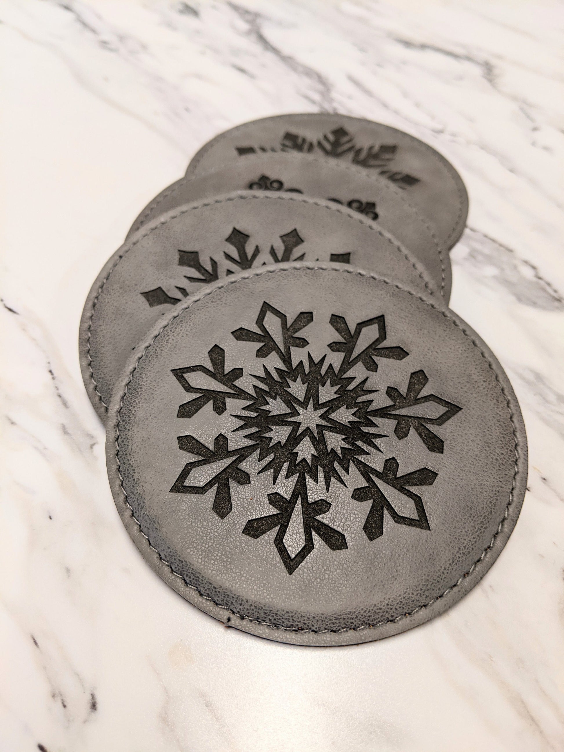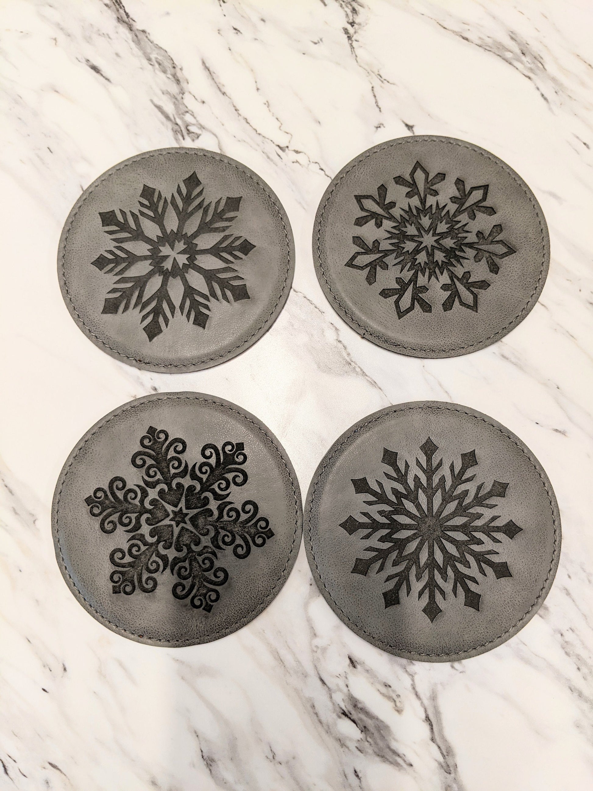 Laser engraved with intricate snowflake details, this coaster set makes a great Christmas gift!