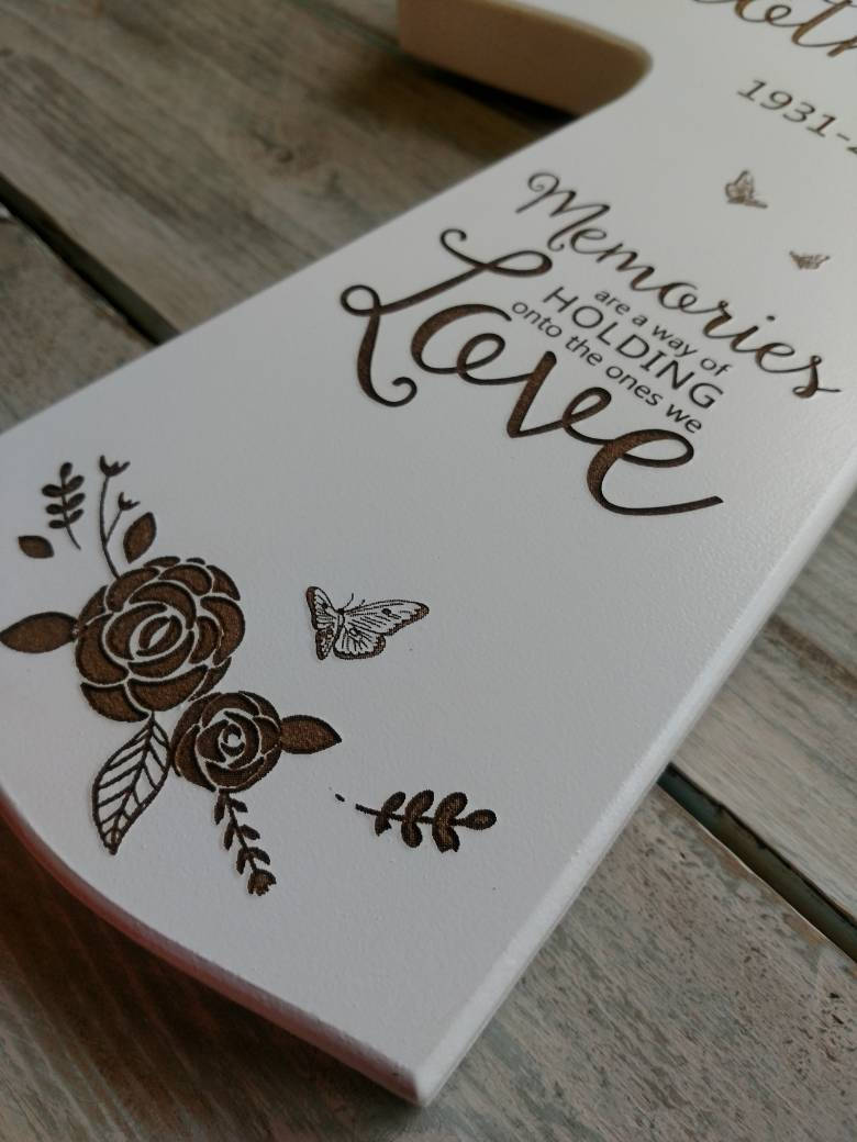 Personalized with name and dates, along with flowers and butterflies , this makes such a special keepsake for families who have lost a loved one. This is a gift that will be cherished for many years to come!