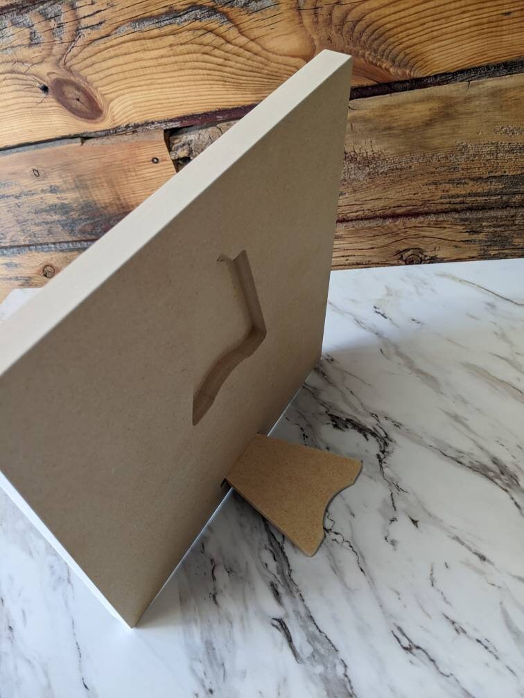 Easily display on the wall by the keyhole in in the back of plaque or on tabletop with included easel.