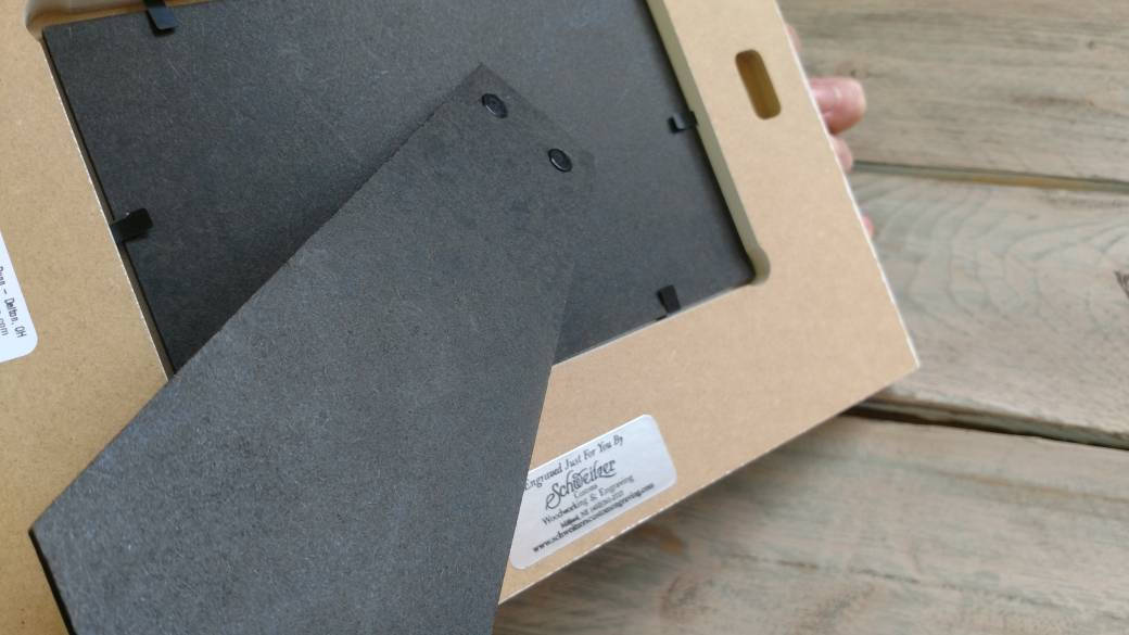 Display easily on a shelf or tabletop with the easel backing.
