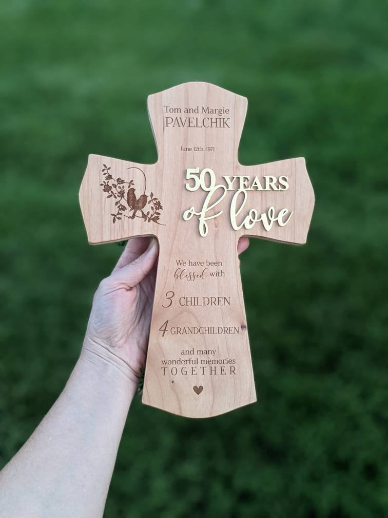 Honor the beautiful timeless love of 50 years (or any anniversary year) with this personalized engraved cross!