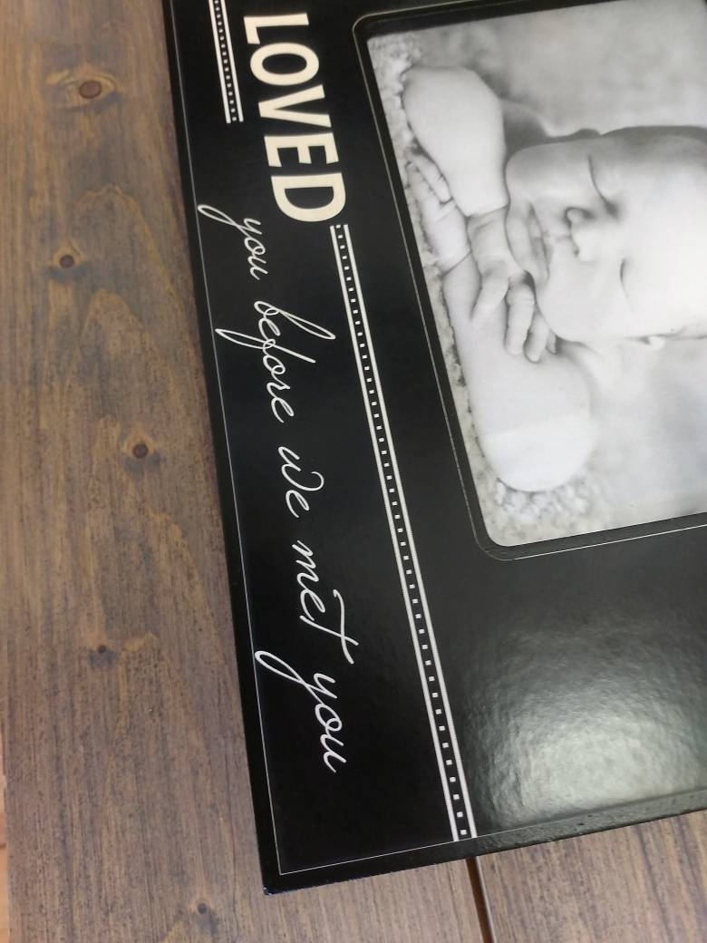 It is engraved with the sweet saying "We Loved You before we Met you" on the bottom. The top is laser engraved with the baby's name and birth date.