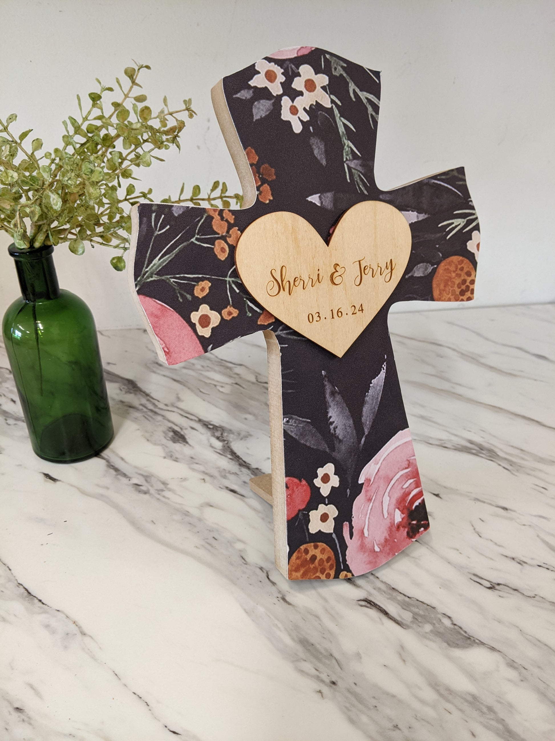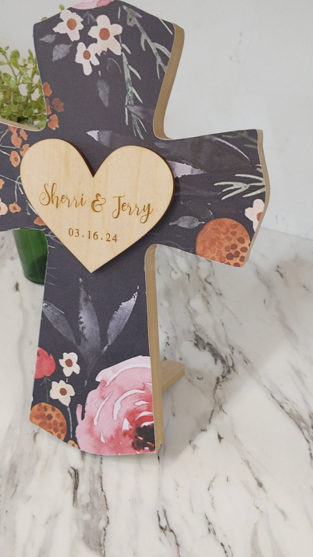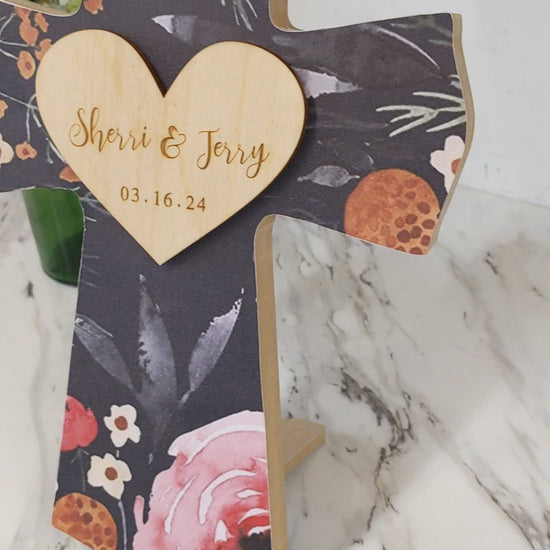 Honor the beautiful love of the wedding couple with this personalized engraved wedding or anniversary cross